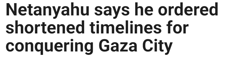 此前一天,以色列总理办公室发表声明,证实总理内塔尼亚胡已指示军方,要缩短进攻加沙城的时间表。
