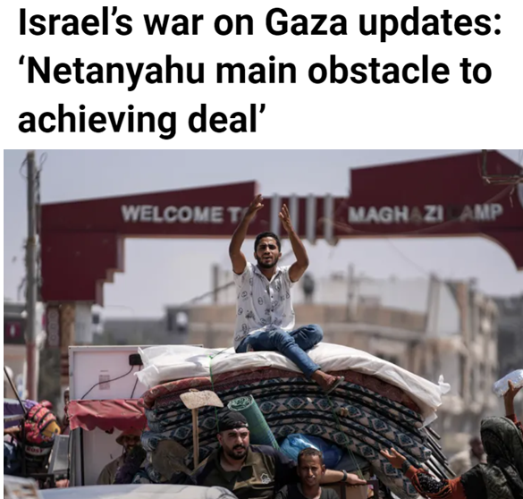哈马斯高级官员同一天称,内塔尼亚胡是达成加沙地带停火协议的主要障碍,其故意拖延对停火提案的回应,“宁愿以被扣押人员的生命和地区未来和平为代价继续战争和种族灭绝”。